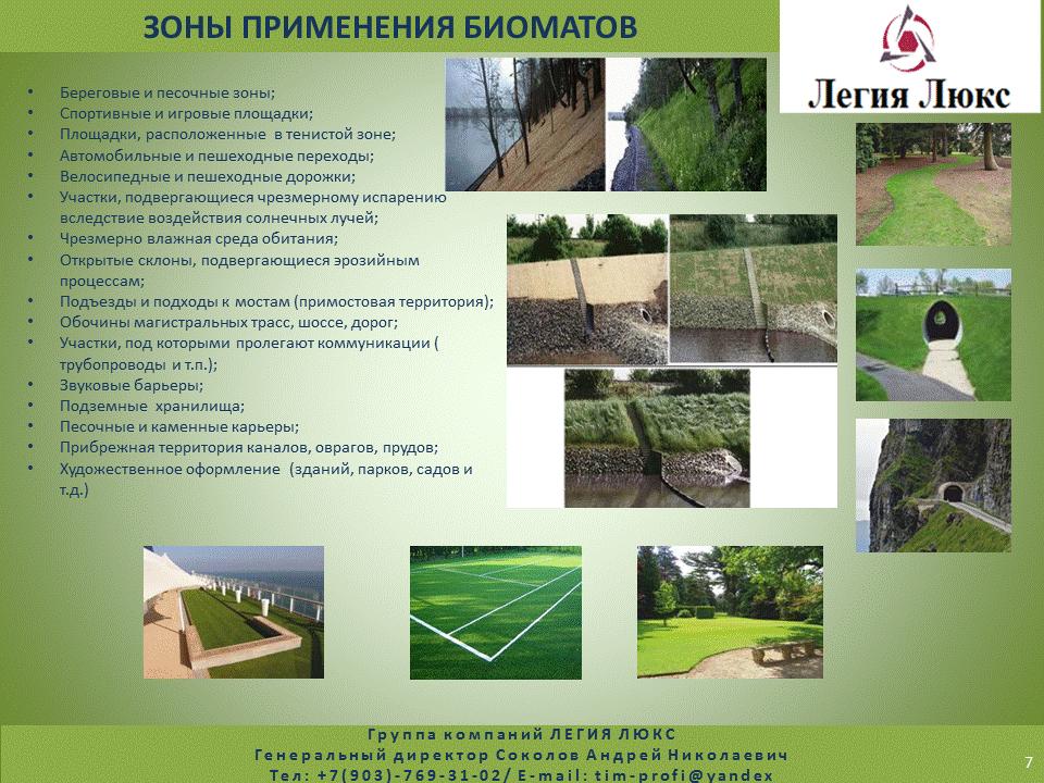 Группа компаний ЛЕГИЯ ЛЮКС занимается производством и доставкой БИОМАТОВ в любую точку. У нас самые выгодные ЦЕНЫ, т.к. мы продаем без посредников!!! Мы можем произвести БИОМАТЫ с любыми техническими характеристиками и любыми удобрениями, подходящие именно для Вашей почвы и Вашей окружающей среды. Более подробная информация ВО ВЛОЖЕНИИ. Свяжитесь с нами напрямую, Генеральный директор Соколов Андрей Николаевич +7 (903)769-31-02 tim-profi@yandex.ru