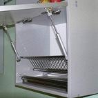 Газовый подъемник (газлифт) наиболее экономичный вариант для горизонтально открывающихся дверей. Имеет два положения : дверца закрыта и дверца открыта, промежуточных положений нет. Неприхотлив, недорог, не требует особого осблуживания кроме того, что нужно иногда открывать дверь пару раз, даже если этим шкафом очень редко пользуетесь.