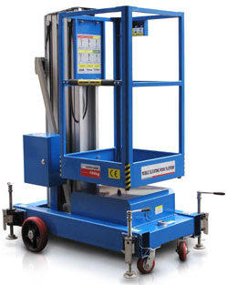 Телескопический мачтовый подъемник одноместный - предназначен для подъема-спуска людей и малогабаритных грузов на высоту до 10 метров. Применяется телескопический подъемник при проведении различных работ на строительных площадках, при монтажных, электромонтажных, ремонтных, отделочных и сервисных работах как внутри, так и вне помещений: при обслуживании фасадов зданий, в торговых и выставочных центрах, на промышленных предприятиях и т.д. Питание мачтового телескопического подъемника осуществляется от сети 220В, 50Гц, от аккумуляторов с напряжением 12В и комбинированное питание (от сети и от аккумуляторов). Телескопический подъемник или, иначе говоря, вышка телескопическая выпускается в одномачтовом и в двухмачтовом исполнении. Двухмачтовые вышки подъемники рассчитаны на подъем двух человек и обладают большей грузоподъемностью по сравнению с одномачтовыми моделями.