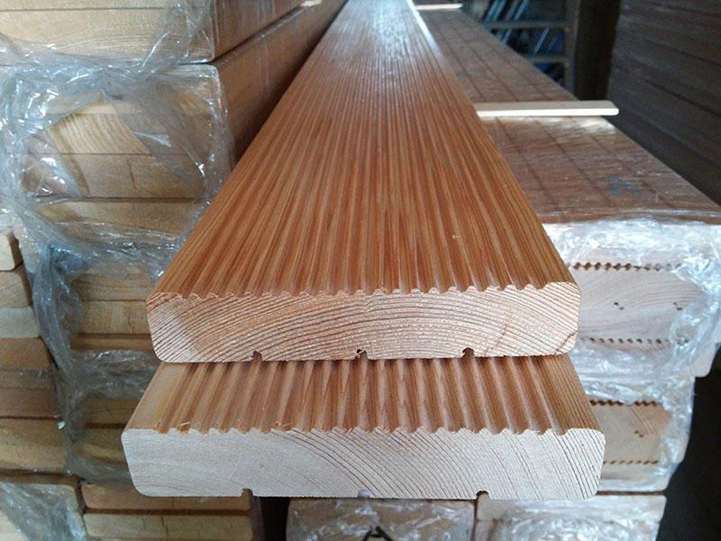 "Террасная доска из лиственницы типа "вельвет" отличается от аналогичных изделий для террас рядом преимуществ. Например, рабочая поверхность террасной доски вельвет выполнена рифлёным строганным рисун