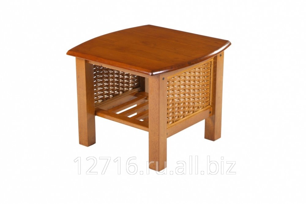 Журнальный столик дачного типа, выполненный из натурального дерева гевеи. Изделию придан изысканный оттенок "-Медовый дуб"-. Столешница в форме квадрата, имеет плавно закругляющиеся края. Индивидуальность этой модели придают закрытые боковые стороны. Стенки имитируют плетеную мебель, но выполнены из тонких прутиков дерева гевеи, как и весь столик. Нижняя полочка выполнена в виде решетки из тонких деревянных перекладин. Столик небольших размеров подойдет для загородной обстановки: - столешница 60х60 - высота 48