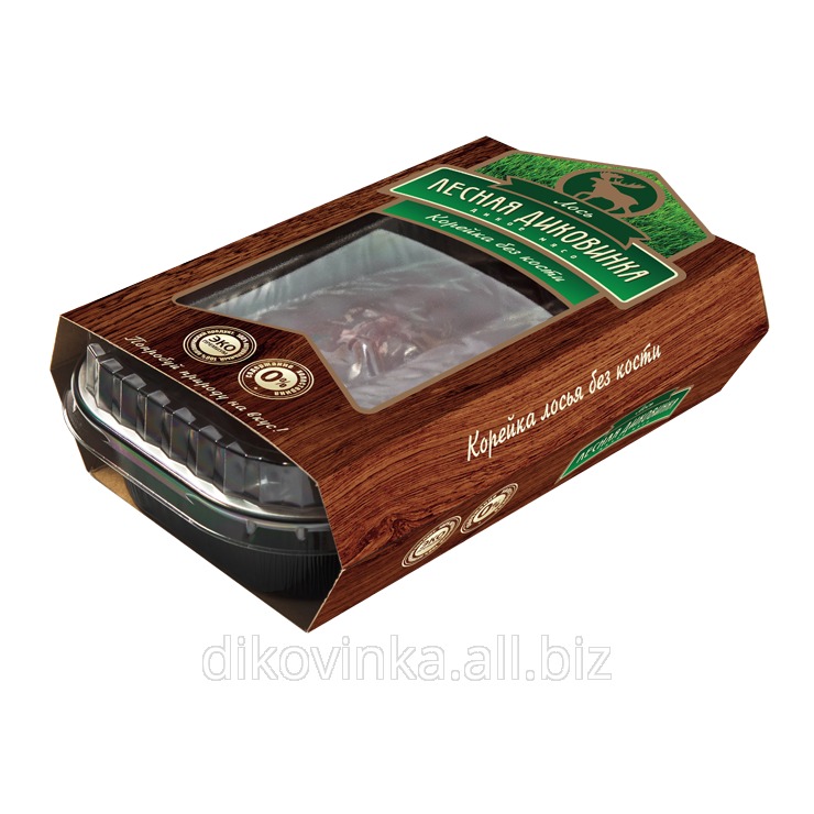 Состав: корейка оленя Пищевая и энерг. ценность в 100г.: белки не менее 19,5г., жиры не более 8,5г., 155 кКал Вес короба (НЕТТО), кг: 8,4 Габариты короба (D*S*H): 565*245*170
