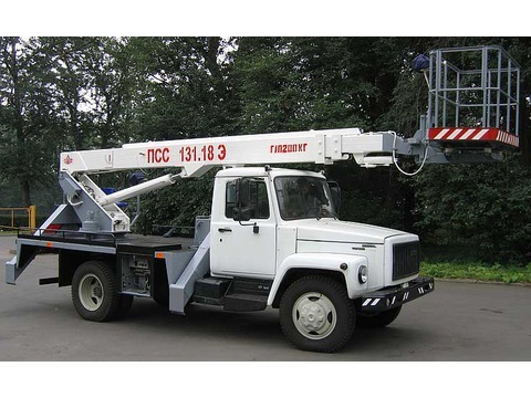 Автогидроподъемник ПСС-131.14Э с электроизолированной люлькой монтируется на шасси автомобилей ГАЗ-33081 с 2-х ряд.кабиной «Егерь II», предназначен для проведения строительно-монтажных и эксплутационн