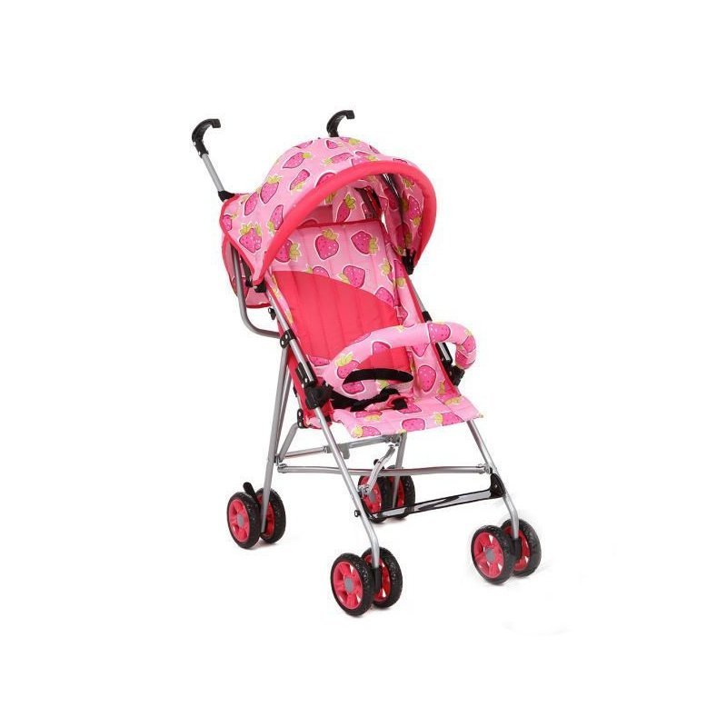 Коляска-трость B-7CG, (2 шт), (РОЗОВЫЙ (КЛУБНИЧКА)), 3 точ.рем.безоп., съемн.бампер, предназначен для детей от 7 мес., Китай GL000128467