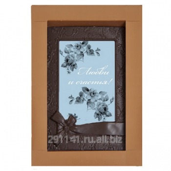 Шоколадная открытка Рамка с бантом "Любви и счастья!" 100мм х 155мм, арт. Отк-142УГ