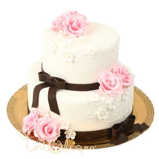 Вес торта на фото 5 кг Цена указана за 1 кг. Если бы этот торт был просто бело-розовым, он смотрелся бы мило и нежно, но несколько скучно. Поэтому мы добавили в его оформление яркий и интересный штрих, пикантную нотку &ndash- два банта насыщенного шоколадного цвета.