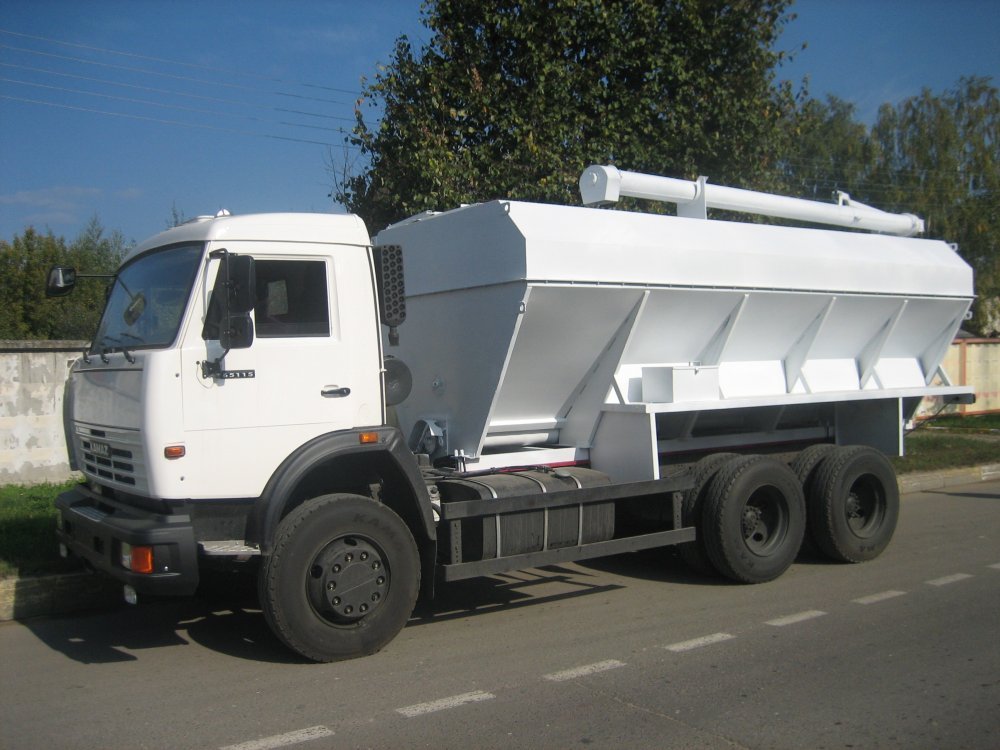 Загрузчики сухих кормов предназначены для транспортировки сухих комбикормов от комбикормовых заводов к животноводческим помещениям и загрузки их в наружние бункеры ферм для хранения. Загрузчики (кормовозы) также могут использоваться для бестарной перевозки зерна. Монтаж осуществляется на шасси КамАЗ. В конструкции выпускаемых автомобильных загрузчиков предусмотрена механизация подъема и поворота выгрузного шнека с помощью гидравлического устройства, позволяющего исключить ручной труд водителя при разгрузке комбикорма, и значительно сокращающего время подъема шнека. Данная опция устанавливается по согласованию с Заказчиком за отдельную плату при заказе ЗСК. Секции бункера ЗСК-20 оснащаются шиберными заслонками (опция). Установлена усиленная коробка отбора мощности.