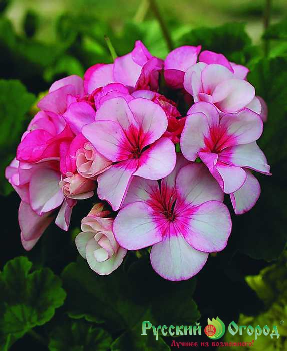 Герань F1 Русский Размер – яркое растение семейства Гераниевых с превосходными «шапками» цветов, которые издалека привлекают всеобщее внимание. Может выращиваться в комнатных условиях или в саду, на п