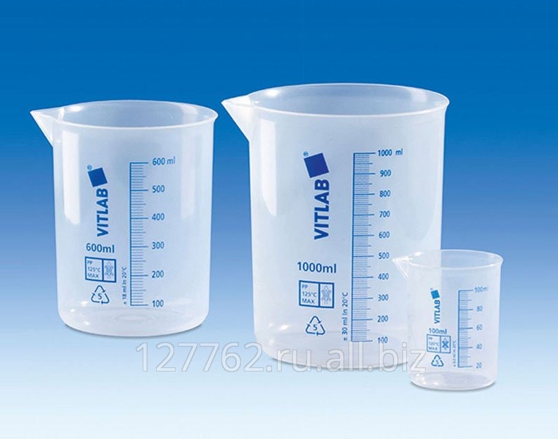 Стакан мерный VITLAB 600 мл, синяя шкала, PP Артикул 612081