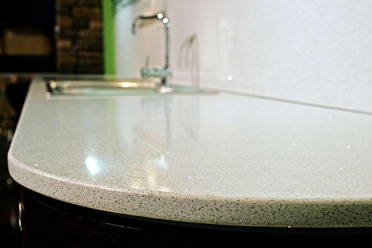 Прочность. Изделия из искусственного камня обладают высокой прочностью: могут выдерживать нагрузки до 575 кг/см2. Поверхность устойчива к воздействию абразивных моющих средств. Материал, из которого изготавливаются столешницы, характеризуется показателем 8 баллов по шкале Мооса.