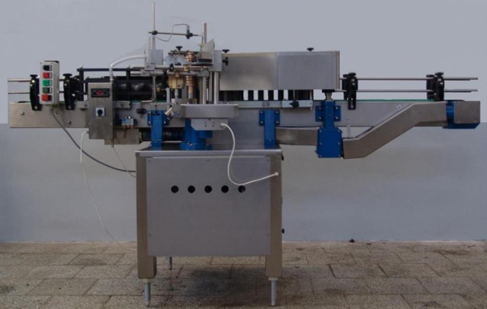 "Автоматическая машина предназначена для наклеивания бумажных этикеток на цилиндрическую поверхность стеклянных и пластиковых бутылок и разнообразных банок. Машина наклеивает одну фронтальную или круг