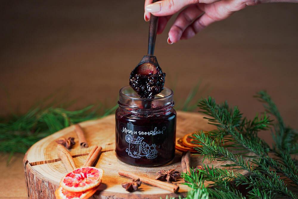 Глинтвейн клюквенный от компании \"Дары Югры\". Место сбора дикоросов Ханты-Мансийский автономный округ - Югра. Состав: клюква лесная, бадьян, гвоздика, кардамон, корица, пектин яблочный, сахар. Лучша