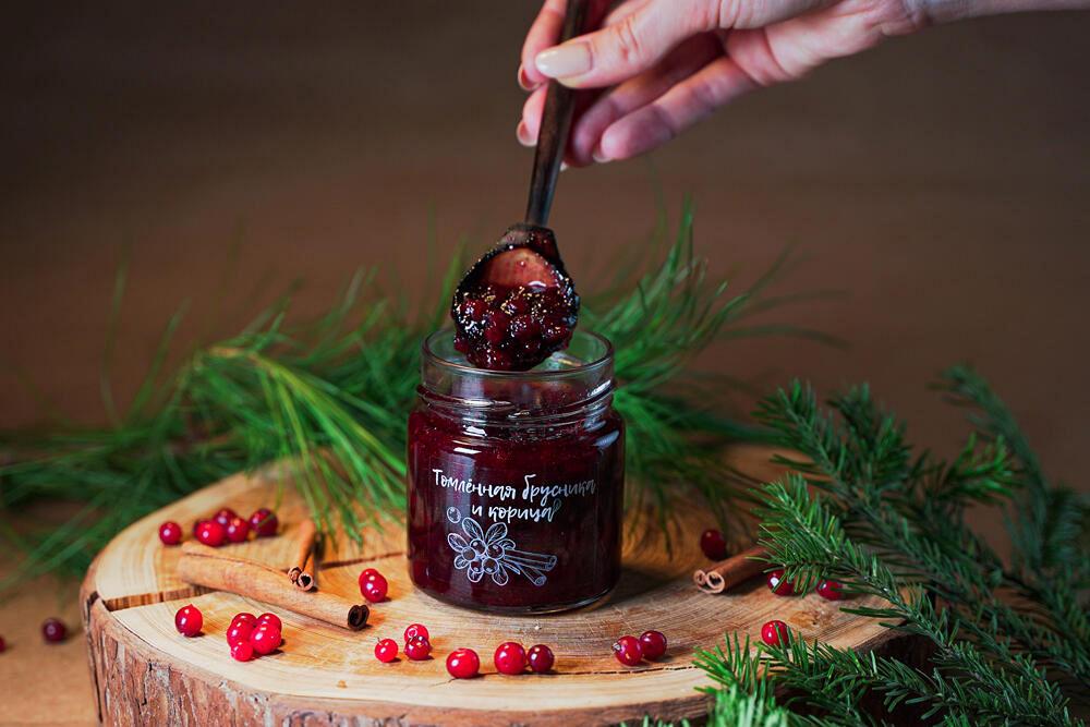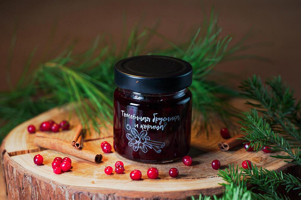 Джем - томленная брусника и корица от компании \"Дары Югры\". Место сбора дикоросов Ханты-Мансийский автономный округ - Югра. Состав: брусника лесная, пектин яблочный, корица, сахар. Лучшая продукция по органолептическим показателям (вкус, запах, структура). Без консервантов! Без красителей! Только натуральное сырье, собранное в экологически чистых лесах Сибири (ХМАО-ЮГРА).