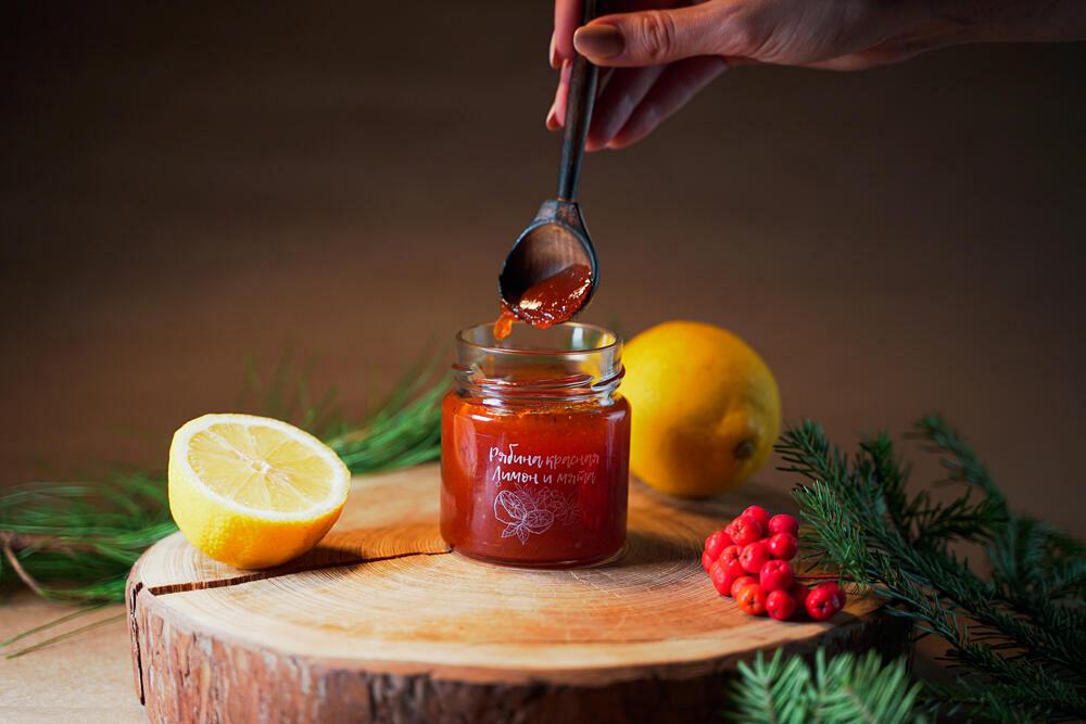Джем - рябина красная, лимон и мята от компании \"Дары Югры\". Место сбора дикоросов Ханты-Мансийский автономный округ - Югра. Состав: рябина красная, сахар, лимон, пектин яблочный, мята. Лучшая продукция по органолептическим показателям (вкус, запах, структура). Без консервантов! Без красителей! Только натуральное сырье, собранное в экологически чистых лесах Сибири (ХМАО-ЮГРА).