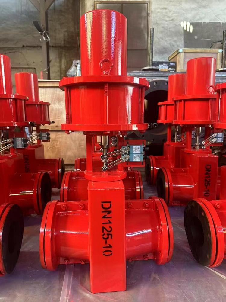 Шланговая задвижка стальная с пневмоприводом 33с617р ру10 ду100, Китай |