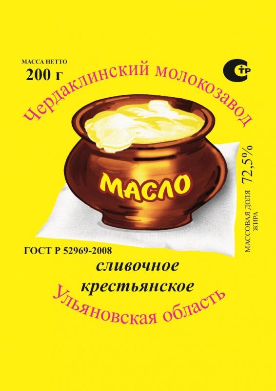 Масло сливочное «Крестьянское», ГОСТР 52969-2008, м.д.ж. 72,5% уп: 200гр, 20кг, 6кг