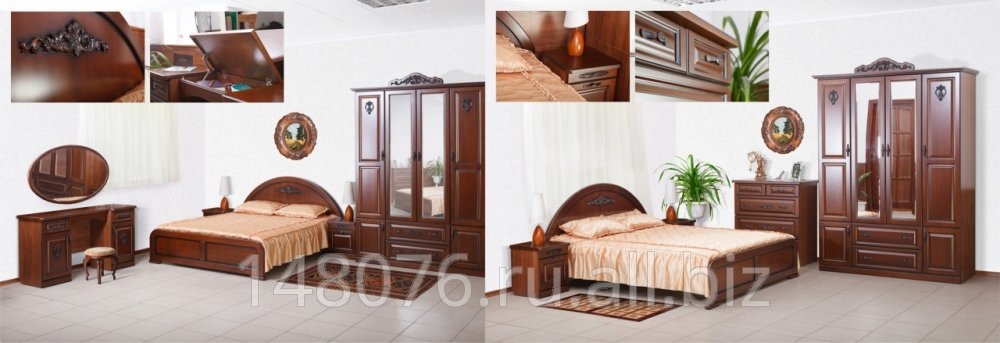Возможно любое сочетание элементов. На фото: шкаф 4-х створчатый с зеркалами (Д1754 х Ш635 х В2310 мм), кровать 2-х спальная (Д2000 x Ш2210 х В970 мм)...