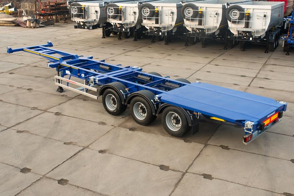 Полуприцеп-контейнеровоз Gr-VCSt Low-bedПолуприцеп-контейнеровоз Grunwald низкорамный универсальный для перевозки стандартных контейнеров: 1х20 Ft, 2х...