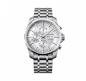 CALVIN KLEIN KC152085 Артикул: KC152085Материал: нержавеющая стальМеханизм: хронографВодозащита: WR 30Стекло: минеральноеРемешок: нержавеющая стальПо...