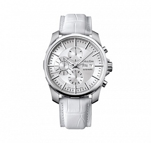 CALVIN KLEIN KC152038 Артикул: KC152038Материал: нержавеющая стальМеханизм: хронографВодозащита: WR 30Стекло: минеральноеРемешок: натуральная кожаПол...
