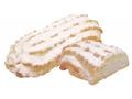 Слои белого бисквита пропитаны сметанным кремом и соединены между собой шоколадной глазурью. Поверхность торта покрыта сметанным кремом со сливками. (...