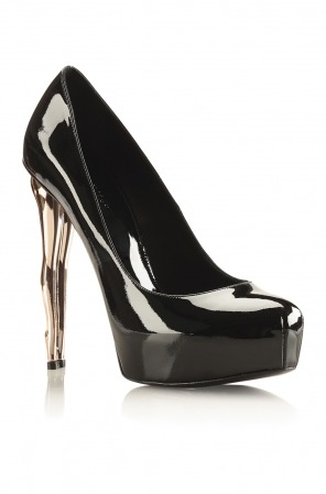 Туфли из лакированной кожи черного цвета. Гальванизированный каблук золотого цвета в форме ножек танцовщиц как из Мулен Руж. Подошва vero cuoio. Кажда...