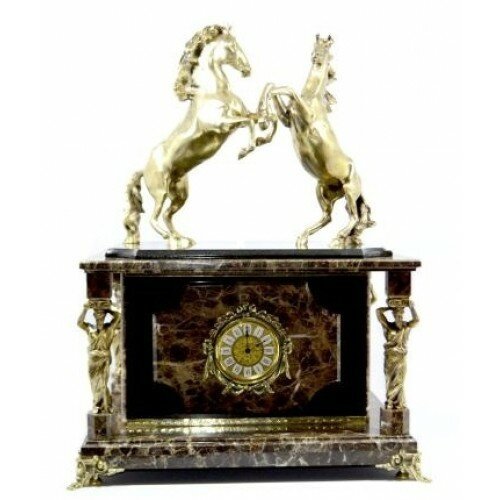 Часы-сейф из итальянского мрамора и долерита с лошадками