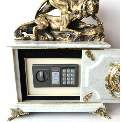 Часы-сейф из белого мрамора с львами