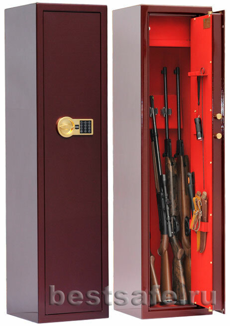 Сейф для охотничьего ружья в лаке VALBERG сафари EL Gold вишня ⟨4 ствола 1385 мм⟩