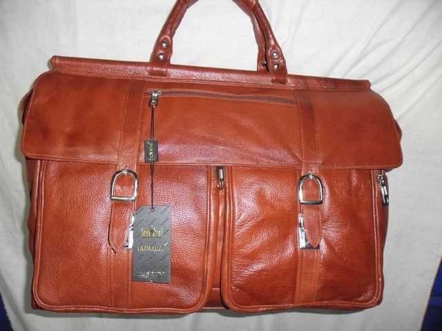 Саквояж с одним отделением, закрывающимся на молнию. Дно жесткое. Есть два внутренних кармана, один из которых на молнии. Плечевой ремень. Размеры: 40...