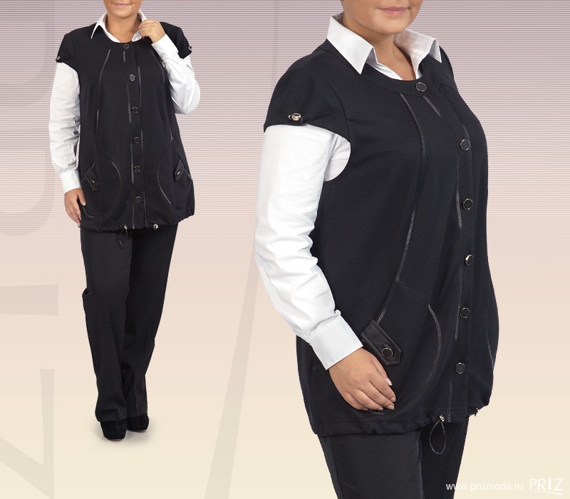 Жакет 10201 Размеры: 84-108Рост: 164-170Состав: Район 70% Нейлон 23% Спандекс 7%Модель: Жакет без воротника выполнен из трикотажного полотна с актуал...