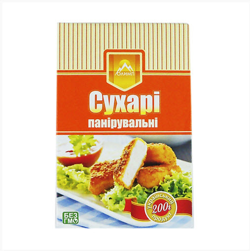 Сухари панировочные«Олимп» Масса нетто, кг 0,2 Коробок в упаковке, шт 24 Упаковок на поддоне 80