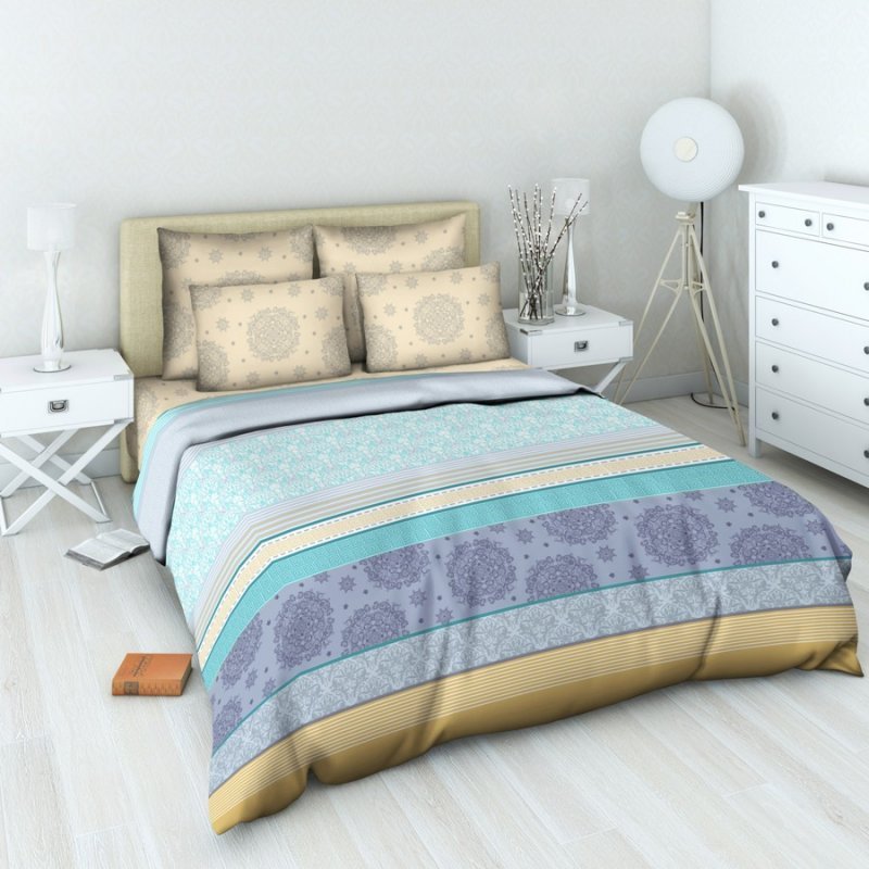 Информация о товаре и его характеристики:Состав: 100% хлопок1,5 бязь ПастиллаПлотность: 120 г/м2Подод. 145х217, прост. 150х220, нав. 70х70 (2шт)Россия...