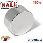Модель: Д-70х30 Форма: Диск Диаметр:70 мм Высота: 30 мм. Вес: 570 г Покрытие: Поверхн. никелированная (Ni-Cu-Ni) Намагничивание: N38 Сцепление: прибл....
