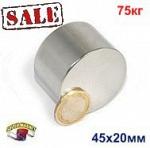 Модель: Д-45х20 Форма: Диск Диаметр:45 мм Высота: 20 мм. Вес: 240 г Покрытие: Поверхн. никелированная (Ni-Cu-Ni) Намагничивание: N45 Сцепление: прибл....
