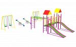 Детский игровой комплекс ДИК 12. Детский игровой комплекс: башня - 2 шт., горка - 1 шт., мостик, лестница, сферический спуск, рукоход, турник, шведска...