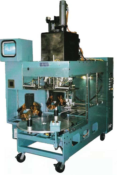 Эта модель с двумя головками имеет двухпозиционный поворотный стол, что позволяет производить загрузку пластин статора и выгрузку готовых пакетов, не...