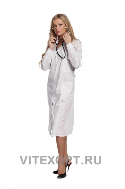 Халат медицинский женский Сирень Халат с рельефами, отложным воротником, длинными рукавами на манжетах, тремя накладными карманами. По талии регулируе...