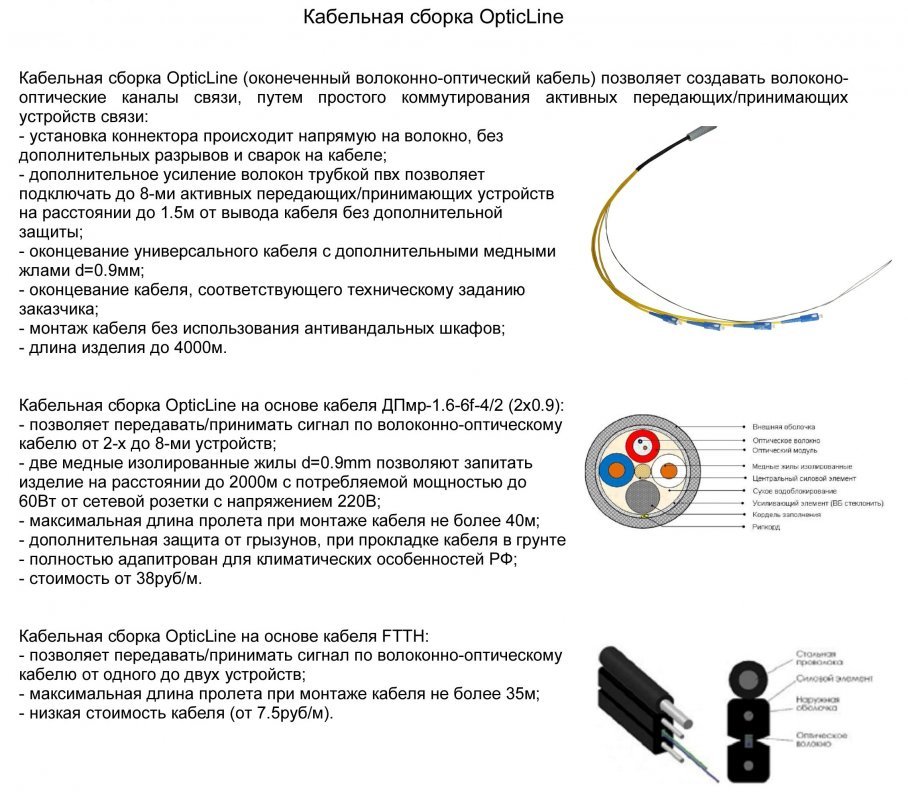 Кабельная сборка OpticLine (оконеченный волоконно-оптический кабель) позволяет создавать волоконо-оптические каналы связи, путем простого коммутирован...